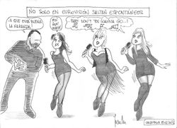 Y los dibujos inconscientes son los menos humorísticos, aunque tampoco suelen ser demasiado serios. Son cosas que me salen sin darme cuenta, sin prestar atención ni pensar en lo que hago. Se me escapan del lápiz o del rotu mientras hago otra cosa, a menudo, hablar por teléfono, o participar en una reunión. La mano va sola. Cuanto más elaborados están, más tiempo han estado encima de mi mesa...